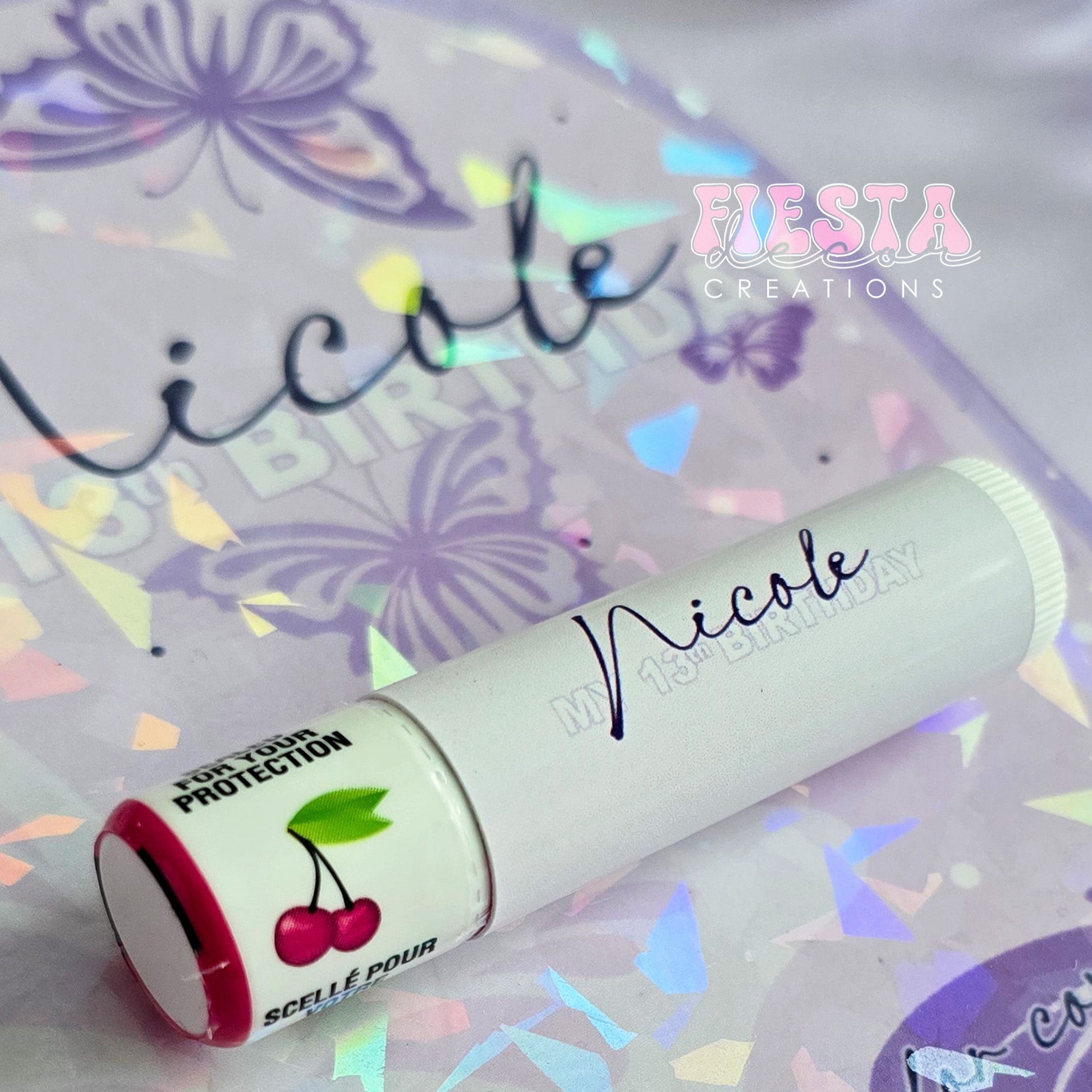 Custom Holographic Lip Balm Favors | Personalized Gifts for All Occasions | Fiesta Decor Creations
